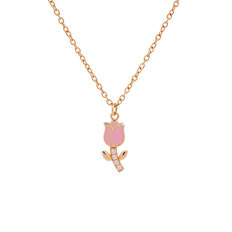 Kalung Bloom Cherie menampilkan siluet tulip yang anggun, melambangkan keindahan dan harapan yang tumbuh dari ketulusan. Detail kelopak yang lembut berpadu dengan kilau emas hangat, menciptakan harmoni elegan yang memancarkan pesona feminin dan keanggunan abadi.