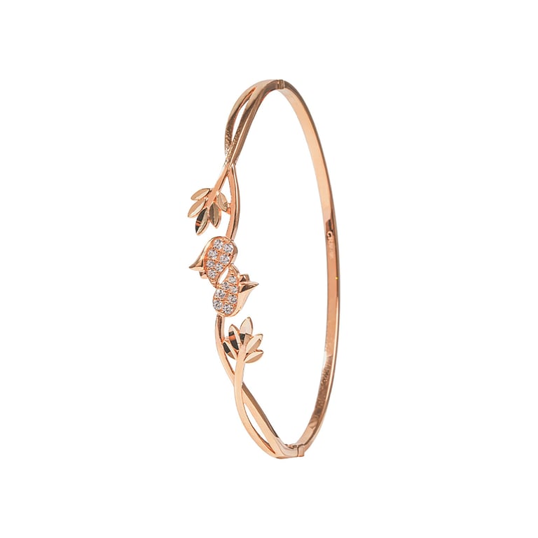 Gelang Bloom Pure hadir dengan desain melingkar yang kokoh dan anggun, menampilkan sentuhan tulip yang berkilau di bagian tengah sebagai simbol ketulusan dan keindahan abadi. Finishing berkilau lembutnya memberi kesan modern yang tetap cocok untuk dikenakan sehari-hari.